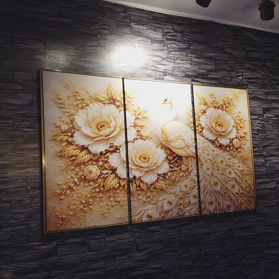 Pavo dorado floral – MEDIDA 120*70 CM